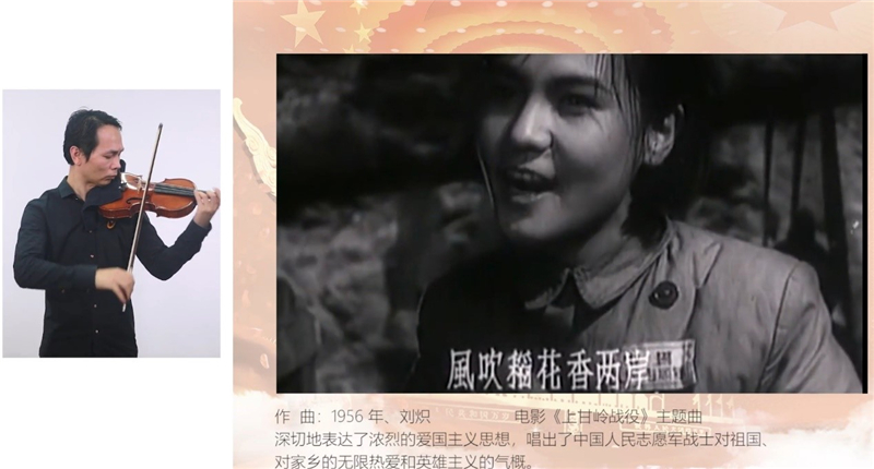 首期课程由管弦系副主任田晖从课程思政的视角对红色经典小提琴曲目《花儿为什么这样红》进行赏析。他从“创作历程”、“乐曲赏析”和“我们的时代责任”三个方面进行了分析,让学生对乐曲背后的故事有了更生动的认识,深刻感受到音乐艺术是传递真、善、美的艺术,领会了习近平总书记关于“文艺要反映好人民的心声,就要坚持为人民服务、为社会主义服务”的论述。通过曲目欣赏,让学生感受到劳动人民的创造之美、体会到边防战士的奉献之美、认识到共产主义思想的境界之美。
