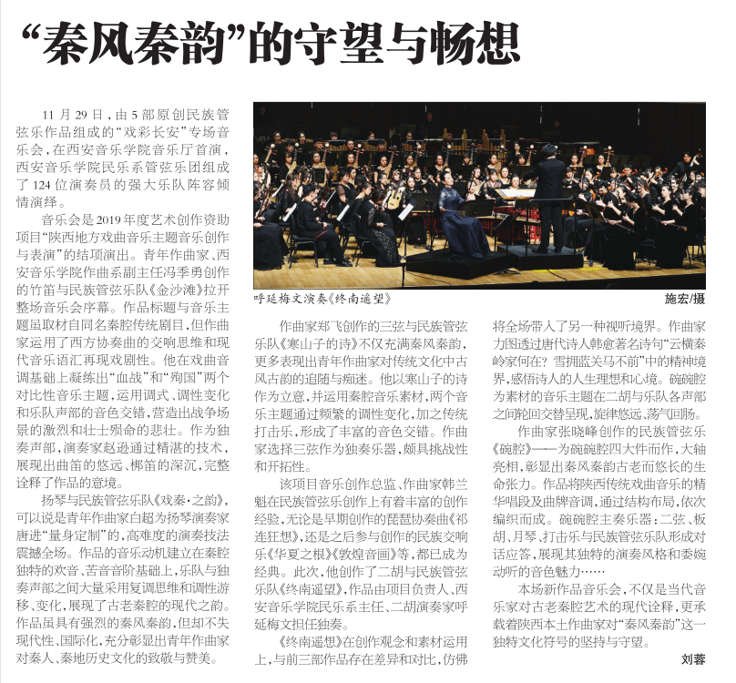 本场新作品音乐会,不仅是当代音乐家对古老秦腔艺术的现代诠释,更承载着陕西本土作曲家对“秦风秦韵”这一独特文化符号的坚持与守望。(刘蓉)