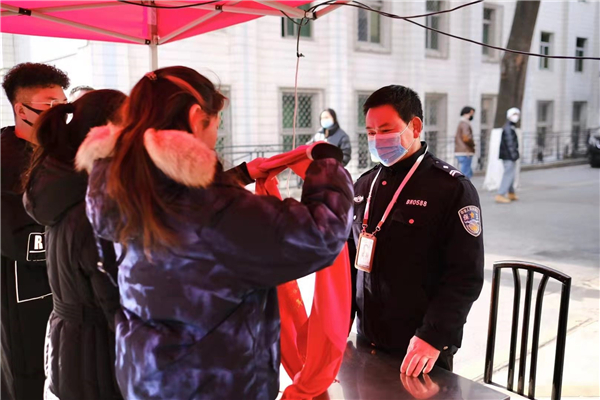 管弦系多支温暖行动小分队在中午时间到达学校包括琴管值班室、保卫值班室和食堂的各个服务点,为辛苦服务师生的阿姨叔叔们上演了一场快闪表演,并为这些辛勤苦劳作的人们围上定制的温暖围巾,送上管弦系师生的祝福与感谢。