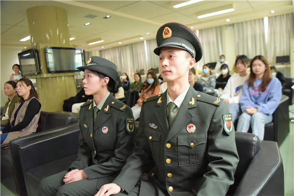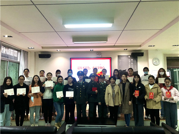 此次活动对三名退伍大学生授予“优秀标兵”称号。学工部武装部王雯老师结合三位退伍大学生入伍经历,向在场的同学们分享了自己八年的军旅生活,回顾了自己的军旅梦与战友情。之后,王雯讲述了大学生入伍相关要求,向青年学生发出应征入伍号召,鼓励年轻人走向部队,感受军旅生活,并表示随时欢迎同学们就应征入伍相关政策与详细内容进行咨询。