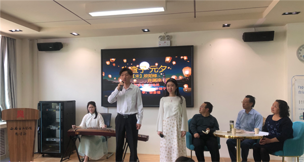 沙龙议程分为小组讨论,小组代表上台发言,期间穿插三个节目:经典影视英语配音、宋代文学家欧阳修词作名篇《生查子·元夕》中英文朗诵(徐佳禧古筝伴奏、赵逸然、田储宁合作朗诵)及英文版《花儿为什么这样红》(薛娇娇演唱)。整个过程气氛热烈,精彩纷呈,西音学子多才多艺,流利的英语表达能力与精彩的表演,令特邀嘉宾及参加活动者赞叹不已。古筝伴奏的欧阳修《生查子元夕》的中英文吟诵,中西合璧,中国古典诗歌和当代英语语言的巧妙融合,点燃了现场的气氛!