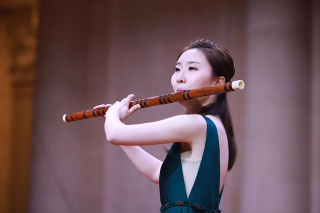 当晚,唐俊乔教授的学生阴梦菲在我校学术厅举办竹笛独奏音乐会。音乐会上,阴梦菲演奏了《塞上风情》《吕韵·伍》《千山情》《热情与冷漠邂逅》《云南回忆》《愁空山》等数首从传统到现代作品的巡礼之作,清晰地展现了唐俊乔教授的教学理念,同时阴梦菲精湛的演奏技艺和大气的音乐表现令音乐厅响起阵阵喝彩与热烈掌声,音乐会吸引了来自学校及社会各界的专家、师生和笛箫爱好者们前来观看,现场座无虚席。