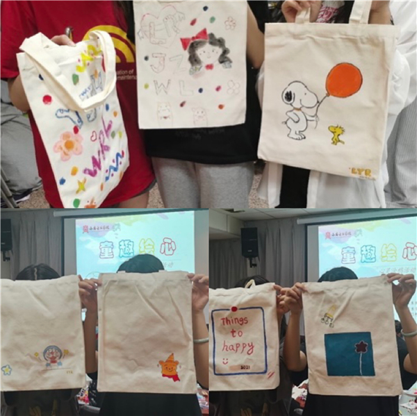 心灵涂鸦由“我的趣味童年”话题开启,大家争相分享童年趣事和对儿童节的美好回忆,热情地投入到活动中。通过分享营造了积极、放松的活动氛围。随后,每个人选择帆布包或扇子,根据自己的童年趣味回忆,画下此刻的愉悦心情。绘画没有指定内容要求,每个人从描画轮廓开始,到调色、填色,最终完成了一幅幅属于自己的特别画作。