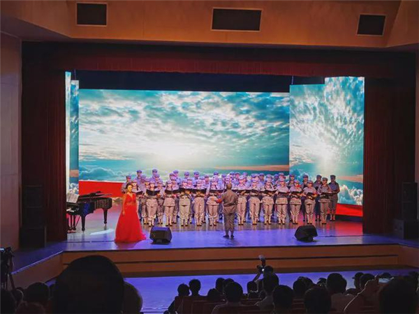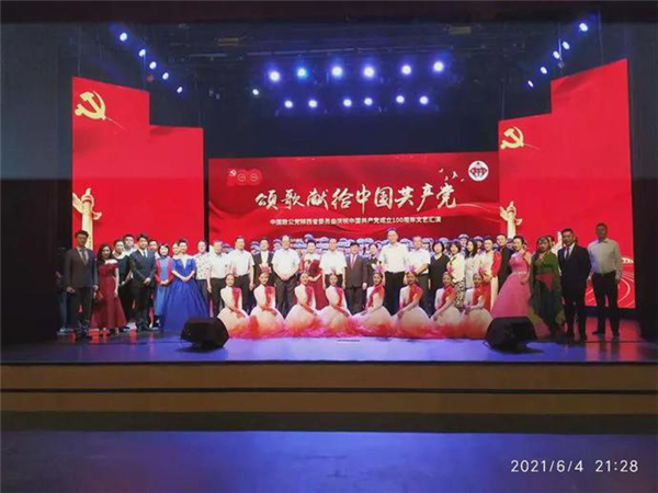 四渡赤水,飞夺泸定桥,历经重重磨难。翻越雪山,横跨大草原,冲破重重天险。文艺汇演在大合唱《七律·长征》中拉开了序幕。女声独唱《南湖的船》、《绣红旗》《把一切献给党》,小提琴独奏《万泉河水》,男生独唱《松花江上》、《我爱五指山,我爱万泉河》,红歌联唱,合唱《大会师》《英雄赞歌》等节目,再现了中国共产党成立、艰苦卓绝的长征、团结带领全国人民开展抗日战胜等伟大奋斗征程。大合唱《我的祖国》、黑管独奏《礼赞中国》、男声独唱 《大中华》、诗朗诵《最美好的时代》深刻的展现了中华儿女对祖国的眷恋之情。舞蹈 《巧手绣出新生活》洋溢着浓郁的地方特色,表达了陕西儿女积极投身陕西经济社会建设,积极投入改革开放大潮的信念和信念。大气磅礴,至情至性的毛主席诗词朗诵,仿佛把现场观众又带回到了那个战火纷飞的年代,沉醉于毛主席深远的意境、广阔的胸怀之中。文艺汇演在《没有共产党就没有新中国》的全场大合唱中圆满谢幕。