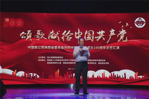 陕西省委统战部副部长虞浩桂、陕西省人大常委会民宗侨外工作委员会副主任赵永波、陕西省政协港澳台侨和外事委员会专职副主任高英芹、陕西省归国华侨联合会书记程勉贵、陕西省归国华侨联合会副主席余劲、西安音乐学院副书记王刚出席了文艺汇演。致公党陕西省委会主委陈超出席文艺汇演并致词。出席文艺汇演的还有副主委姜波、张华俊,副秘书长彭红以及部分党员。出席晚会的领导为省委会庆祝中国共产党成立100周年知识竞赛和摄影展获奖者颁发了奖杯和荣誉证书。