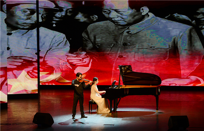 伴随着“时代楷模”“人民艺术家”贠恩凤老师和我校师生带来的《唱支山歌给党听》《南泥湾》《延安颂》《东方红》《在希望的田野上》《为祖国干杯》《我的祖国》《不忘初心》等红色经典音乐作品的唱响,现场观众置身于中国共产党百年征程的洗礼;中国科学院西安分院陕西省科学院科研工作者的集体朗诵《百年复兴 科技报国》《党旗引领科学路》《院士箴言》等节目,生动展现了奋战在科研一线的老、中、青科学家致敬国之脊梁,接受科学家精神洗礼,薪火相传、砥砺前行,不断推动科技事业蓬勃发展、蒸蒸日上,带着伟大的科技强国梦一起飞,将全场推向高潮。