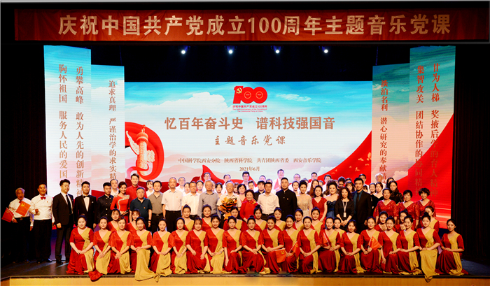 为庆祝中国共产党成立100周年,2021年6月7日,我校联合中国科学院西安分院 陕西省科学院、共青团陕西省委共同举办的“忆百年奋斗史 谱科技强国音”主题音乐党课在学校音乐厅隆重举行。中国科学院院士、陕西省最高科技奖获得者侯洵,中国科学院西安分院陕西省科学院党组书记、院长赵卫,团省委书记段小龙,我校党委副书记王刚、副院长侯颉和来自各科研院所科技骨干代表240余人参加了活动。