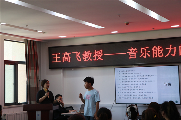发布会结束后,王高飞为延安大学的师生们展开了一场精彩的学术讲座——《音乐能力的培养及测评》,对于音乐片段、音乐能力测试、针对如何培养及提升乐感进行详细讲述,深入浅出、生动活泼,现场气氛热烈。