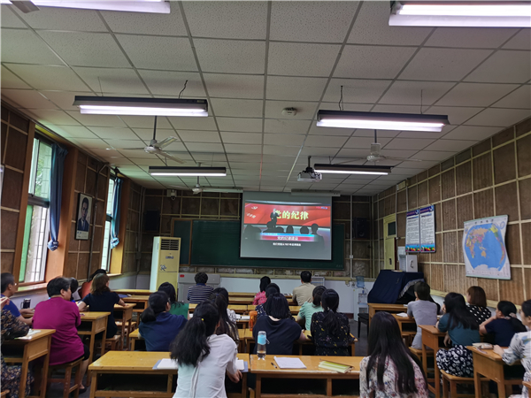 附中直属党支部深入开展纪律教育,加强党史教育,活动分三步走。第一部分组织学习“学党史”纪律教育专题党课,由附中直属党支部书记为全体党员讲授主题《党的纪律建设历史》,引导党员教师知史爱党、知史爱国,时刻知党爱党,提高个人素养。第二部分围绕党史教育,开展我心永向党、跟党走集体观影活动。组织全体党员教职工观看献礼中国共产党成立100周年优秀影片《冰山上的来客》,重温经典影片、感受党的光辉历史,时刻心怀感恩,牢记使命,成为一名有担当的有责任心的人民教师。最后,开展“守党纪”警示教育活动,会上党支部书记向大家宣读文件,组织党员观看《陕西省党员干部警示教育资料》警示教育片等资料视频,明确家风建设重要性,引导党员老师们要吸取教训、引以为戒,达到以案明纪、以案促改、正风肃纪的效果。