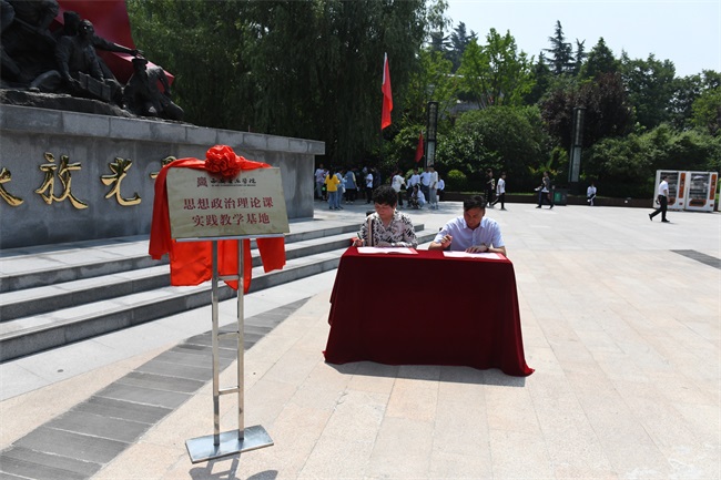 为了充分发挥红色教育基地的教育示范作用,教育引导党员干部和广大师生从党的光辉奋斗历程中汲取营养和智慧,6月28日,渭华起义教育基地广场前,在马克思主义学院全体教师和学生志愿者代表的见证下,马克思主义学院院长谢宝利与渭华起义教育基地主任曹宁共同为“西安音乐学院思想政治理论课实践教学基地”揭牌,并签署战略合作协议。双方将通过举办党史展览、辅导讲座、专题党课、开展志愿服务、组织实践活动等方式,充分利用红色资源,以爱国主义教育和红色传统文化教育为主线,充分发挥红色资源的育人作用。