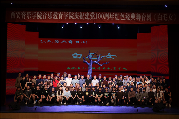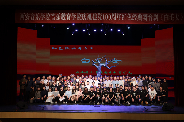 为庆祝中国共产党成立100周年,重温党的光辉历程,歌颂党的伟大成就;2021年6月28日至29日,我校音乐教育学院编排的红色经典舞台剧《白毛女》在艺术中心歌剧舞剧厅精彩上演,音乐教育学院师生演职人员为广大师生们奉献了一台洋溢着红色革命激情的视听盛宴。陕西省人大常委会副主任梁宏贤,校党委副书记王刚,副院长强陆平、侯颉,音乐教育学院党政领导及师生代表到场观看本次演出。