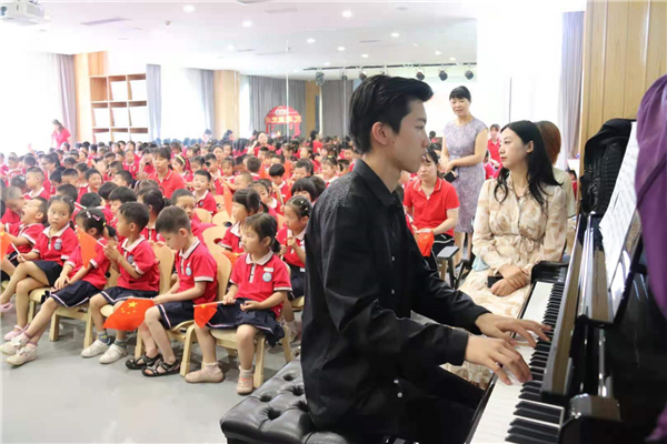 主讲李心畅同学在开场跟孩子们共同祝贺了党的100岁生日,随后为孩子们播放了《唱支山歌给党听》这首歌曲,并启发式地提问了孩子们这首曲子的名字和歌词,孩子们都争先恐后地抢答着,展现了对这首曲子极高的热情和积极性。之后,跟着郑砚策同学的钢琴伴奏,一句一句地学唱了四句歌词,孩子们个个歌声嘹亮,积极踊跃,这些幼小纯真的孩子们美好的歌声,就是他们对党的生日最好的祝福。李心畅同学也给孩子们讲了共产儿童团小英雄们的故事,鼓励孩子们像这些年龄同样小的英雄们学习,不怕困难,努力奋斗。在课堂的最后,郑砚策同学以精湛的演奏技巧,在两首经典乐曲的演奏中,结束了此次活动。