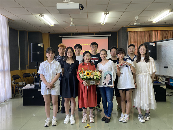 彭媛娣老师作为退休教师代表,向学生们讲述了在学校一路走来的教学历程,并关切的询问学生们的学习生活情况。马锡老师代表学院为彭老师送上鲜花,对老教师为学院建设发展做出的贡献表示感谢,数字媒体专业学生徐云迪为彭老师制作电脑绘图肖像画,作为教师节礼物,并祝福老教师身体健康,希望他们继续关心和支持学院的建设和发展。