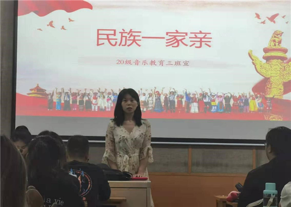 为深入学习贯彻习近平总书记关于民族工作重要论述精神,认真落实中央民族工作会议精神、习近平总书记在庆祝中国共产党成立100周年大会上的重要讲话精神、《中国共产党统一战线工作条例》、中央省委关于民族工作的决策部署,全面贯彻党的教育方针,推进落实立德树人根本任务。音乐教育学院各年级各班利用班会、团队活动,以铸牢中华民族共同体意识为主线,紧紧围绕活动主题,讲述民族团结进步故事,组织开展丰富多彩的民族团结教育主题活动。