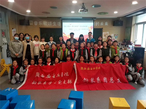 2021年10月14日,钢琴系学生党支部、团总支赴西安市高新第四小学开展“百年礼赞心向党,红色音乐进课堂”主题活动。