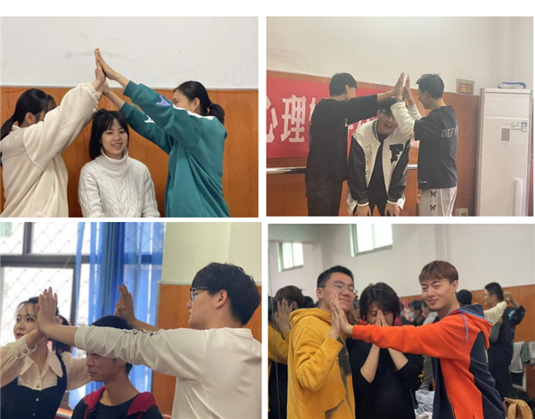 贠老师首先按照3人一组的形式将活动成员分成不同小组,组内组成“松鼠”和“大树”,开始热身活动。接着用“有家真好”的游戏打乱活动成员的原有布局,使同学们“被动”离开熟悉的小朋友圈,再通过“花样握手”使原本并不熟悉的同学之间有了进一步的认识和了解,营造出轻松愉悦的活动氛围。紧接着是“我是一条龙”游戏,通过猜拳,将全班同学组成头尾衔接的“一条龙”,彼此为前后的同学捏肩放松,礼貌性的肢体接触使同学们的关系更加亲密,也在体验“服务”与“被服务”的过程中领悟“感恩”的意义。