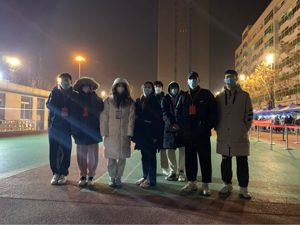 在人员较多的核酸检测点,舞蹈学院青年志愿者积极引导同学们测量体温,维持现场排队秩序;在学校家属院门口,也能看到志愿者的身影,他们积极协助有关部门对家属院进行进出管控,除此之外,还帮助家属院居民运送物资。