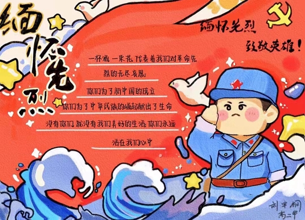 同学们用手中的笔,或写或画记录下自己了解的清明风俗、英雄故事,并以自己的方式解读清明、走近革命烈士,弘扬英烈精神。
