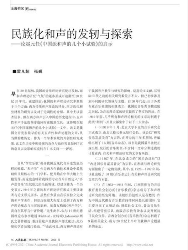霍凡超博士于2021年6月,以“优秀毕业生”荣誉称号在上海音乐学院获“作曲理论”方向博士学位,同年7月在我校作曲系任教。担任作曲系本科四年级《现代技术分析》及附中作曲学科《和声》的课程教学工作,并于今年4月以课程《近现代音乐音高组织研究》获批研究生部“2021年新增研究生课程项目”。在学术研究上,积极配合作曲系的作曲技术理论学科建设工作,参加课题国家社科基金艺术学一般项目《序列音乐技术的中国化研究》,参与撰写结项著作,评定等级为优秀。参加国家社科基金艺术学重大项目《中国现当代作曲理论体系形成与发展研究》之“和声”子课题,作为课题组成员,先后在《交响》、《黄钟》、《人民音乐》等期刊公开发表相关研究成果。