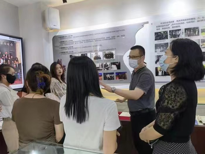 “饶余燕音乐艺术特藏馆”陈列着我国著名复调学专家、作曲家、音乐教育家、我校资深教授饶余燕先生出版的教材、创作的音乐作品原始手稿以及教学活动、学术交流、日常生活等影像。以饶余燕教授为代表的西音学者为传承音乐艺术、弘扬西音精神付出了毕生心血。郭强教授作为饶余燕先生的学生,回忆起恩师传道授业的经历,动情地讲述了饶余燕先生教学、生活日常中的动人细节,参观过程中,那些可观、可感、可听的真实历史让同学们深受触动。