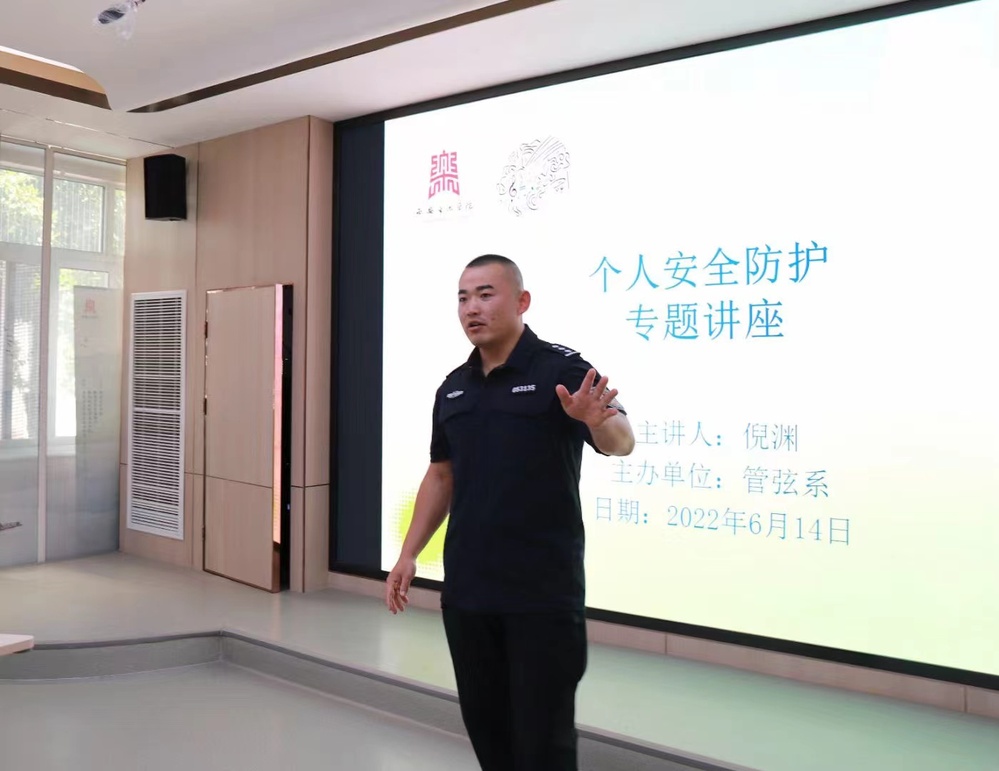 为切实加强学生们的安全意识和防范能力,保障学生健康成长,管弦系于6月14日上午在三号教学楼开展“个人安全防护讲座”。本场讲座特邀西安市公安局警察训练支队警体教研室副主任倪渊宣讲,我校保卫处处长高学飞、小寨派出所徐勇军警官出席,管弦系负责人、师生代表参与本次讲座。