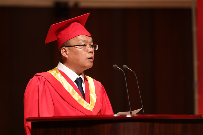 校党委书记张立杰代表学校向全体2022届硕士研究生表示热烈祝贺,并向辛勤工作的导师和背后默默付出的毕业生亲友致以崇高的敬意和真挚的感谢。
