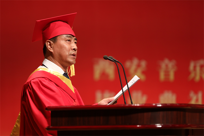 党委副书记李宝杰宣读《西安音乐学院关于准予2022届宗钰等257名研究生毕业的决议》《西安音乐学院关于授予2022届宗钰等257名研究生硕士学位的决议》《西安音乐学院关于表彰2022届硕士研究生优秀学位论文的决定》《西安音乐学院关于表彰2022届硕士研究生优秀毕业音乐会的决定》。