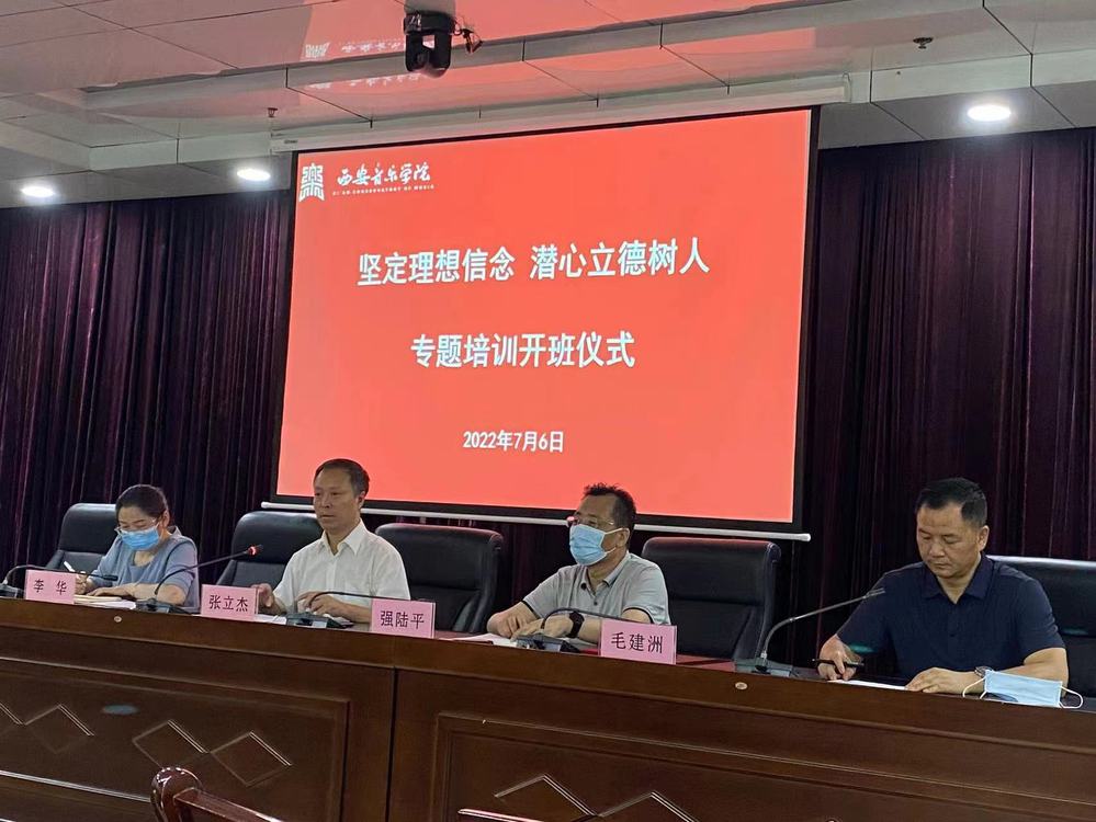 为深入贯彻习近平总书记关于教师队伍建设的重要指示精神,落实省教育厅开展教师思想政治教育和师德师风建设的意见,7月6日上午,学校举行“坚定理想信念 潜心立德树人”——2022年教师思想政治和师德师风常态化建设专题网络培训开班仪式。校党委书记张立杰、副院长强陆平、各院系(室)党政负责人、教师代表和培训管理员等参加。会议由党委教师工作部副部长、教师发展中心主任毛建洲主持。