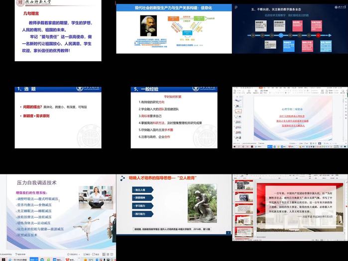 中国延安干部学院教学科研部延安精神研究中心主任冯建玫教授《弘扬延安精神 牢记初心使命》的讲座,以丰富的史实、生动的故事以及一张张珍贵的老照片,声情并茂地讲述了中国共产党在延安十三年的光辉历史,全方位诠释了延安精神的内涵,号召各位青年教师以赤诚之心、奉献之心、仁爱之心投身于党和国家的教育事业。