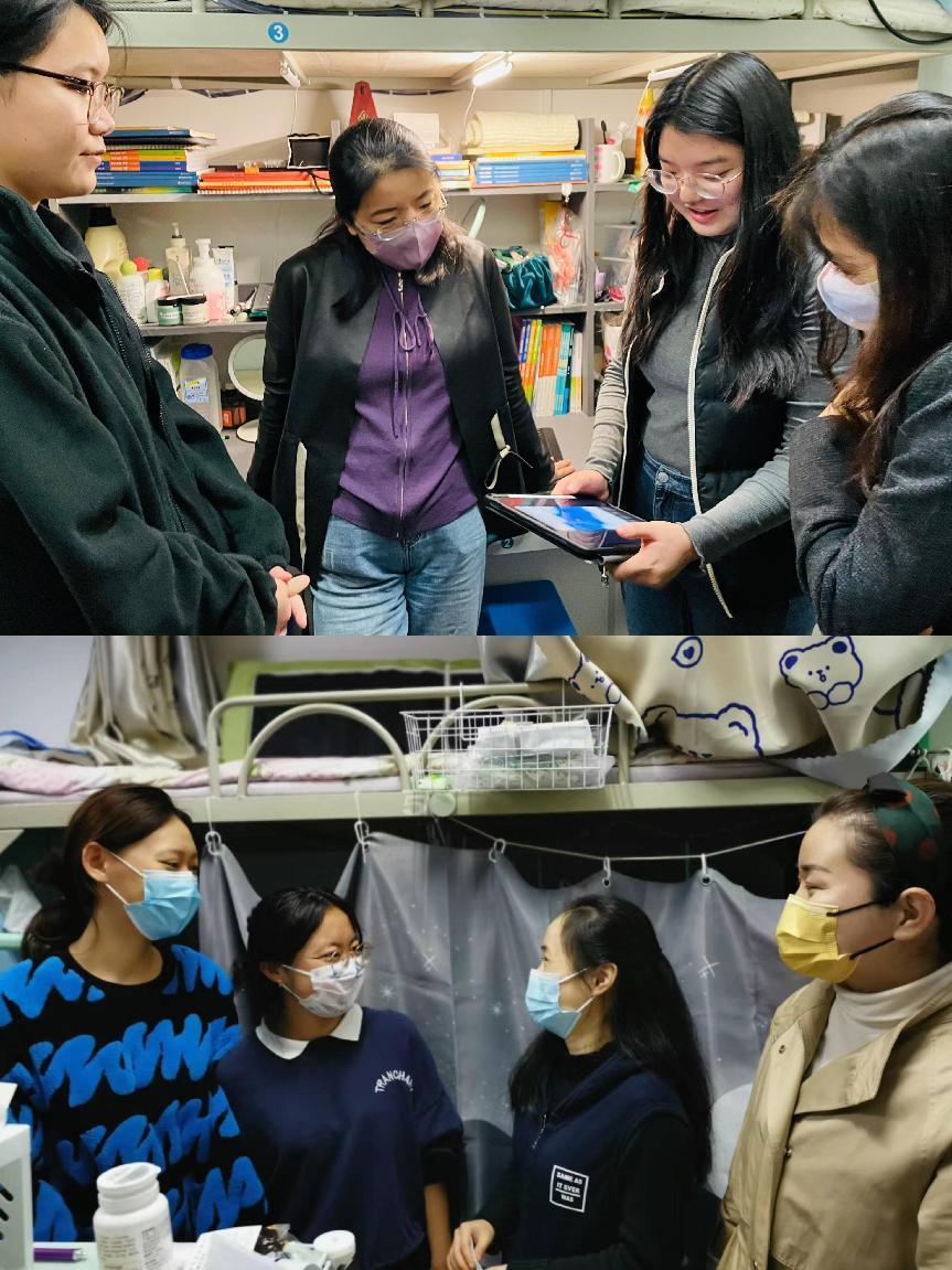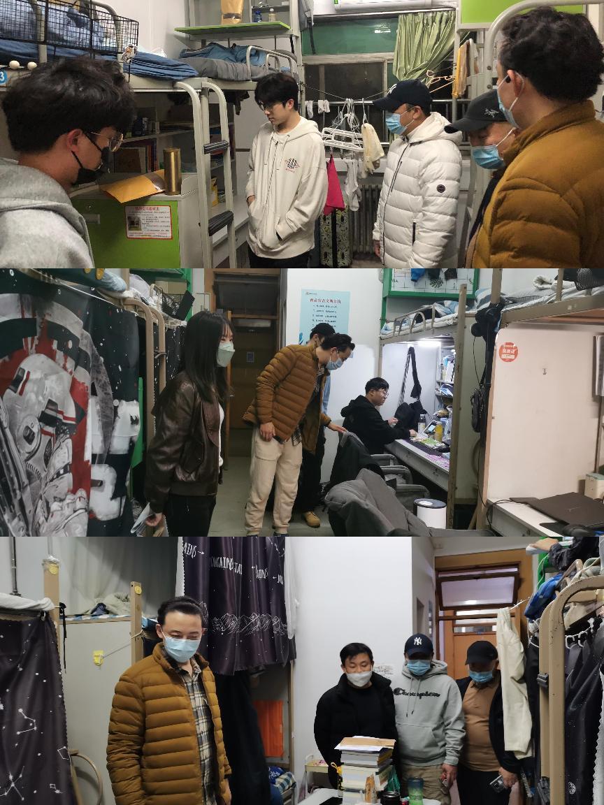 10月25日、27日晚,音乐教育学院党委书记王倩、正处级组织员赵军伟、团总支书记兼辅导员组长刘菲儿,带领全体辅导员以及在校居住的专业老师,深入学生宿舍看望学生,关心学生学习生活情况并宣传学校防疫政策。