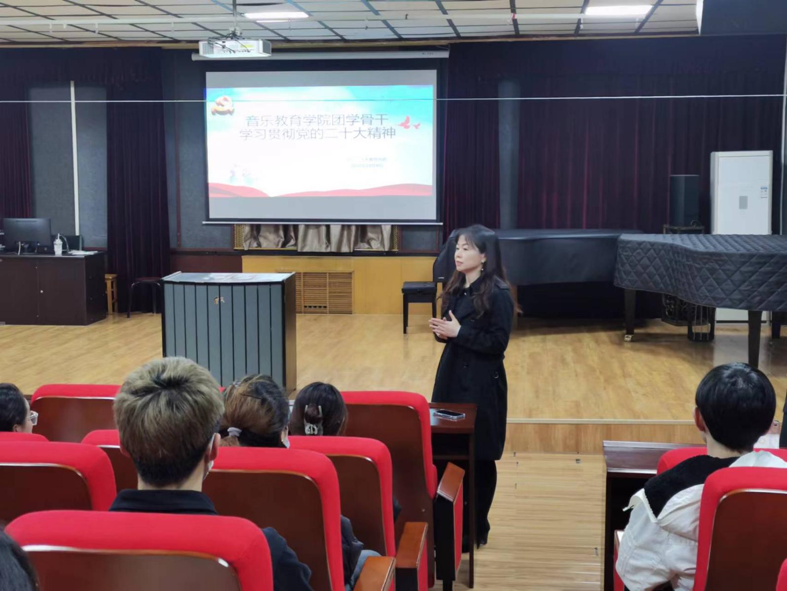 为深入学习贯彻党的二十大精神,11月9日,音乐教育学院团总支举办“学习党的二十大精神”主题团日活动。学院分党委书记王倩、副书记张志强、团总支书记刘菲儿和团学骨干参加活动。
