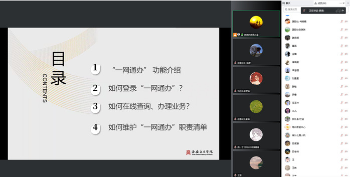根据学校工作安排,12月1日,我校“一网通办”平台正式上线试运行,为使广大师生更好了解平台功能和日常操作,信息化处组织开展“一网通办”日常操作视频培训会议,各单位、各部门网信工作具体负责同志和部分学生参加培训。