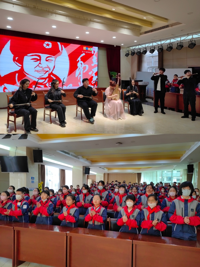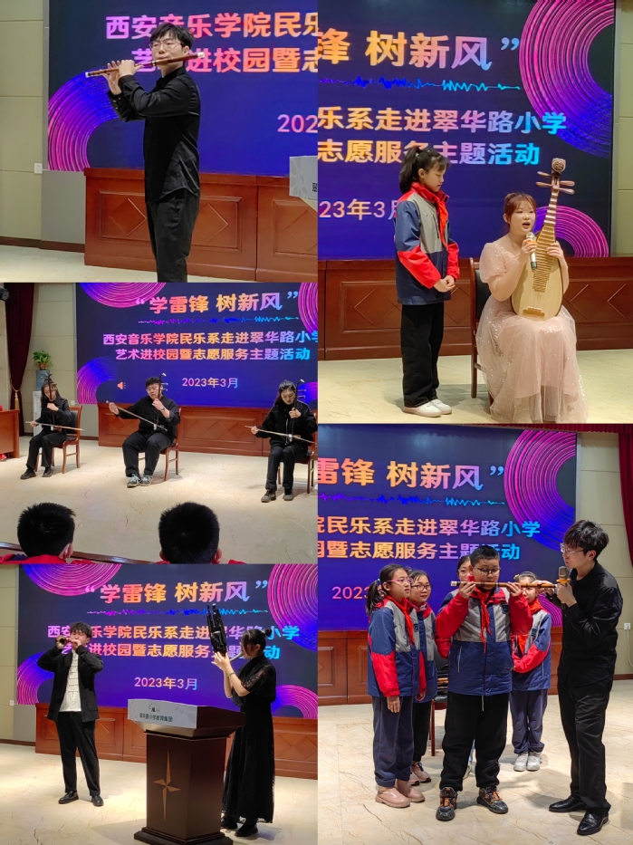 为深入学习贯彻习近平总书记对开展学雷锋活动的重要指示精神,践行艺术为人民服务使命,展示时代文明新风,2023年3月2日,在第60个“学雷锋纪念日”暨第24个“中国青年志愿者服务日”来临之际, 民乐系组织志愿者走进翠华路小学开展“学雷锋 树新风”——弘扬中国传统音乐文化主题实践活动,让雷锋精神在新时代绽放更加璀璨的光芒。