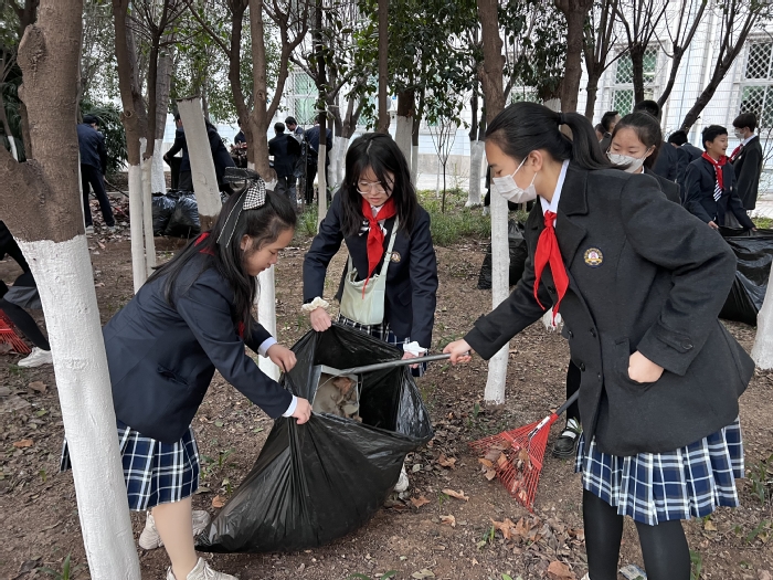 仪式结束后,各班有序开展学雷锋系列活动。少先队员们清理花坛、擦拭公共设施、打扫地面、植树……飘扬的红领巾成为了校园一道亮丽的风景。同学们在活动中得到了锻炼,在锻炼中得到成长,雷锋精神也将在他们身上得到延续。