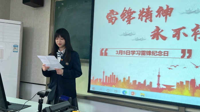 随后各班团员轮流上台发言,讲述了自己对雷锋精神的理解以及就新时代青年应如何传承和践行雷锋精神进行热烈讨论。随着活动的推进,雷锋向上向善、公而忘私、爱党爱国、爱社会爱人民的形象在同学们心中愈加清晰,大家对雷锋精神有了更深刻的了解和感悟,认识到开展学雷锋活动的重要意义,为继承和弘扬雷锋精神做好了准备。