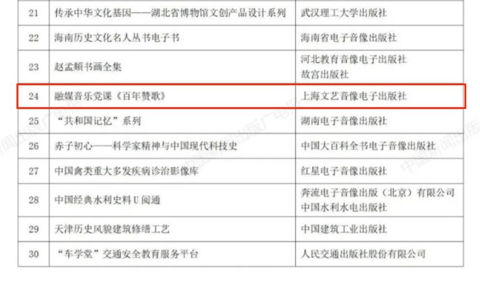 根据中央宣传部文件批复精神,中国出版协会于4月24日发出《关于公布第八届中华优秀出版物奖评奖结果的通知》(中版协发字[2023]第008号),正式公布了第八届中华优秀出版物奖评奖结果。由音乐教育家、西安音乐学院原副院长王平教授主编的融媒音乐党课《百年赞歌》荣获其中“电子出版物提名奖”,成为由我省作者编撰的音乐类出版物中唯一一部获此殊荣的著作。