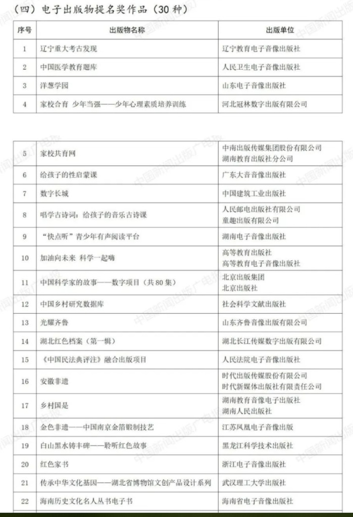 中华优秀出版物奖是中国出版行业国家级奖项,与全国精神文明建设“五个一工程”奖、中国出版政府奖并列为业界三大奖。第八届中华优秀出版物奖由中国出版协会组织开展,旨在促进出版业高质量发展,多出精品力作,满足人民对美好文化生活的需要,设图书奖、音像电子出版物奖、全国优秀出版科研论文奖三个子项奖,经初评、复评、终评程序严格评选,《百年赞歌》以其丰富详实的内容结合全媒体的传播方式得到读者和评委们的一致好评。