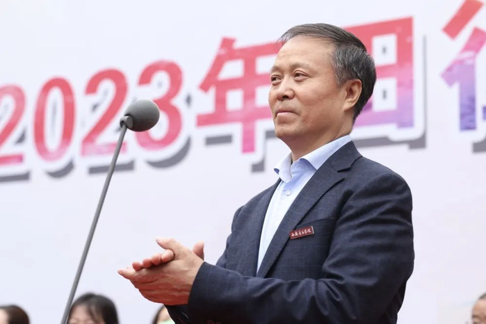 党委书记张立杰宣布西安音乐学院2023年田径运动会开幕。