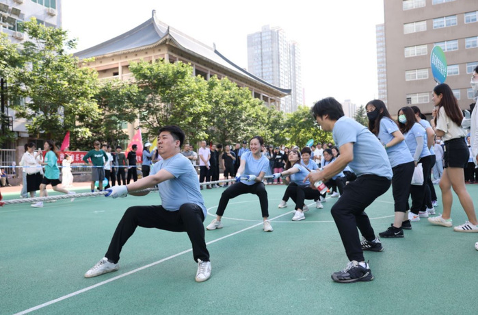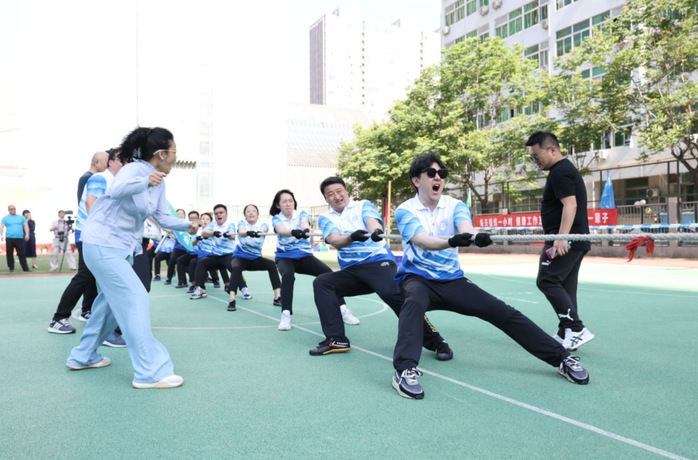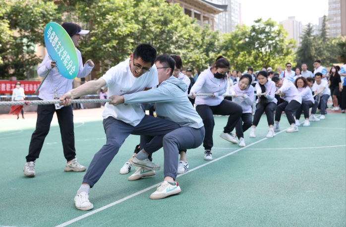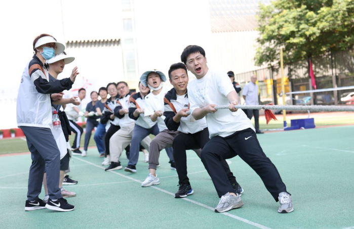 “拔河”项目将本次运动会现场的气氛推到了最高点,比赛中选手们个个咬紧了牙关,使足力气,两边的拉拉队也不甘落后,加油声一浪更胜一浪。整场趣味运动会气氛既热烈又欢乐,展现了我校教职工积极向上、团结奋进的精神面貌。