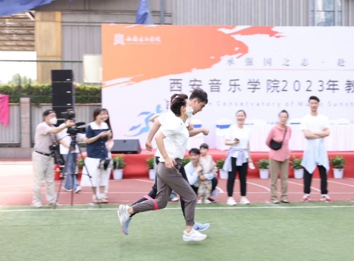 2023年6月9日,西安音乐学院2023年教职工趣味运动会隆重举行。校党委书记张立杰、党委副书记李宝杰,副院长仲廷虎、副院长强陆平出席运动会开幕式。开幕式由校工会主席职秀芝主持。本次趣味运动会设置了“集体跳大绳”、“5×30米往返绑腿接力”、“拔河”等3个比赛项目。经过各二级分工会精心组织,全校15个分工会、42支队伍、303人参加。