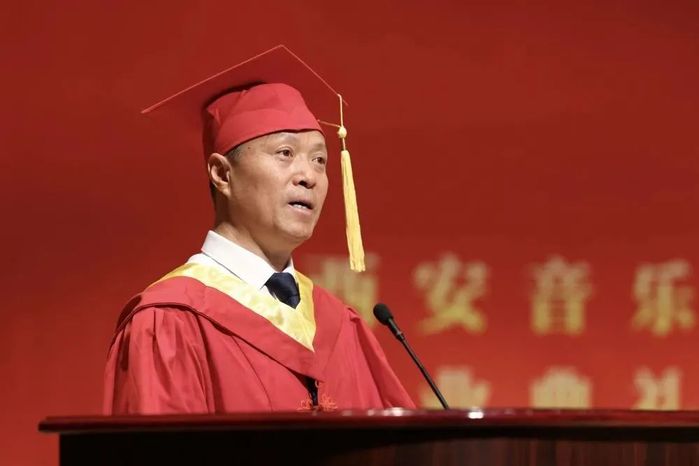 研究生导师代表牛苗苗教授代表全体研究生导师向毕业生送上了诚挚的祝福和殷切的嘱托,希望全体研究生带着宁静乐观的心走出校园,打拼出属于自己的一片天地!“你们从这里走向社会,愿你们用音乐服务社会服务人民。为你们祝福!”