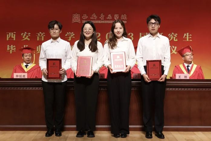 与会校领导为优秀学位论文、优秀毕业音乐会获得者及指导教师、校级优秀研究生毕业生、优秀研究生学生干部颁发荣誉证书。