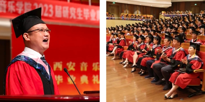 党委副书记王刚宣读《西安音乐学院关于表彰2023届硕士研究生优秀学位论文的决定》《西安音乐学院关于表彰2023届硕士研究生优秀毕业音乐会的决定》《西安音乐学院关于表彰2023届优秀研究生毕业生、2022-2023年度优秀研究生学生干部的决定》。