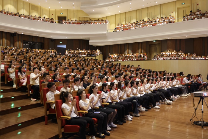 教务处副处长史小亚着重强调了自主与诚信。他鼓励同学们根据自身目标自主选择适合的课程,以塑造更出色的自我,并引用了一句古训:“待物莫如诚,诚真天下行”,强调诚信在大学及日后工作生活中的重要性。最后,他寄语新生能够“明德明智,修学修为”,做一名新时代优秀大学生。