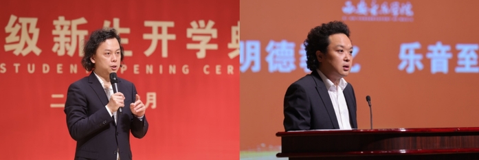 教务处处长王高飞向新生提出四点建议。第一是要热爱生命、热爱父母、热爱同学、热爱专业;第二是要在大学四年扎实基本功的学习;第三是要提升乐感,让音乐之路走得更久更长;第四是要多读书,没有底蕴的音乐人将寸步难行。