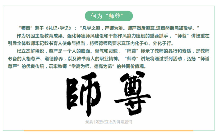 为大力弘扬教育家精神,深入学习贯彻习近平新时代中国特色社会主义思想,引导广大教师树立“躬耕教坛、强国有我”的志向和抱负,10月18日,学校组织召开“师尊”讲坛系列活动启动仪式,首场报告邀请校党委书记张立杰担任主讲。报告会由党委副书记李宝杰主持。