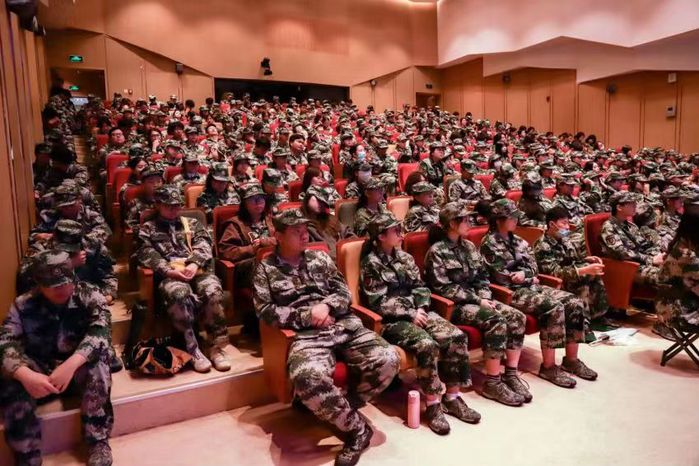 随后,仲廷虎结合自身军旅经历和时事热点,勉励同学们要树立正确的新时代国防观。一是要自信,热爱国家,坚持中国特色社会主义道路自信、理论自信、制度自信、文化自信。二是要自律,警惕看不见的敌人,提高是与非、美与丑、善与恶的分辨能力,筑牢思想防线、守好人生关口。三是要自强,自觉接受国防教育和训练,珍惜军训机会,端正思想态度,不怕苦不怕累,发扬顽强拼搏的精神和毅力,为中华民族伟大复兴而不懈奋斗。