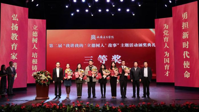 10月25日,由党委宣传部、党委教师工作部、人事处、艺术中心、教师发展中心联合举办的第二届“我讲我的‘立德树人’故事”主题宣讲活动暨颁奖典礼在艺术中心歌剧舞剧厅成功举办。陕西省教育厅教师工作处三级调研员王小峰及兄弟院校相关领导应邀出席活动并担任评委。校党委书记张立杰,院长王真,党委副书记李宝杰、王刚,党委副书记、纪委书记、省监委驻校监察专员易红彬,副院长仲廷虎、强陆平、侯颉出席。各院系师生代表及学校副科级以上干部等300余人参加本次活动。