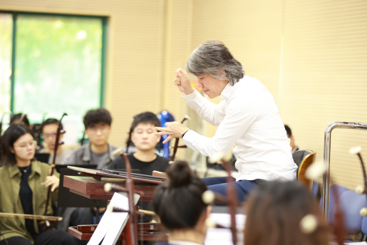 公开课上,周熙杰对《周溯》一曲进行了细致的排练。从作品历史背景与创作背景出发,引领大家深入了解作品,为同学们讲解了丰富的音乐理论知识,并以不同的速度充分锻炼乐队的音乐感受力与敏锐的音乐反应力。此次公开课让同学们对作品与民族管弦乐再次有了全新的体验与认知,提升了同学们的音乐素养。
