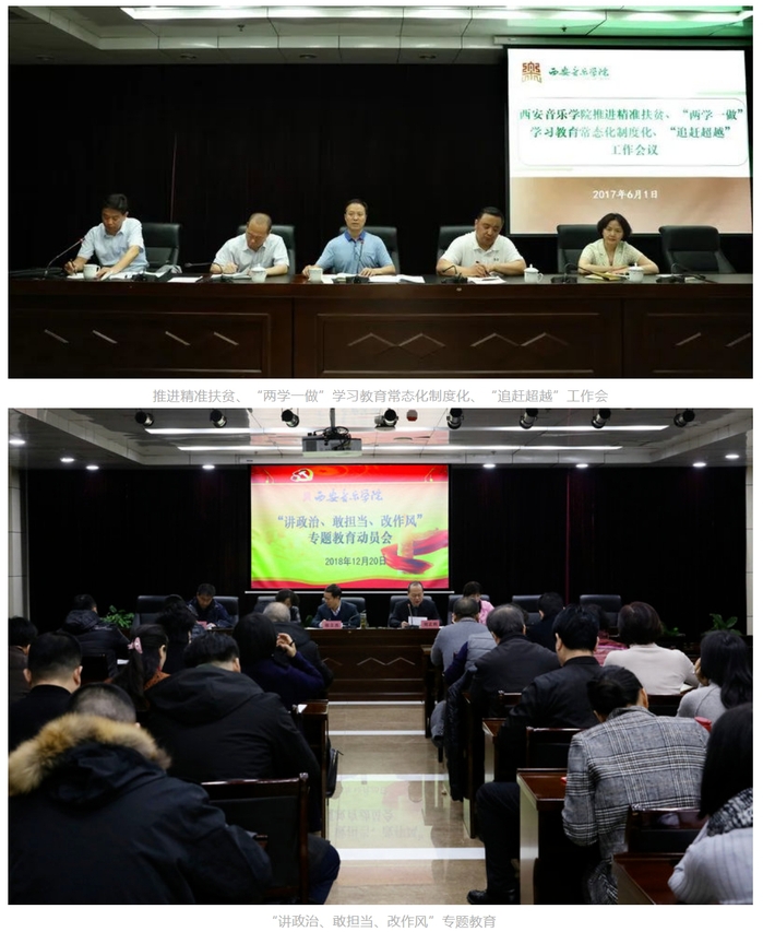 西安音乐学院第九次党代会召开以来,校党委以习近平新时代中国特色社会主义思想为指导,深入贯彻党的十九大、二十大精神,全面落实新时代党的建设总要求,严格落实党建工作责任制,以党的政治建设为统领,强化基层党组织政治功能和组织功能,推动党建与事业发展融合共进。六年来,学校党的建设全面加强,党建工作规范化程度和质量持续提升,全面从严治党向纵深推进。